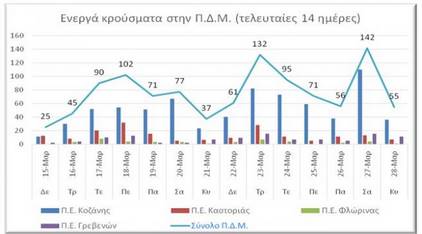 Η Περιφέρεια Δυτικής Μακεδονίας στα πλαίσια της ενημέρωσης για την εξέλιξη των κρουσμάτων κορωνοϊού, δίνει στη δημοσιότητα σχετικό πίνακα στον οποίο αποτυπώνεται ο αριθμός των ενεργών κρουσμάτων κατά Περιφερειακή Ενότητα.