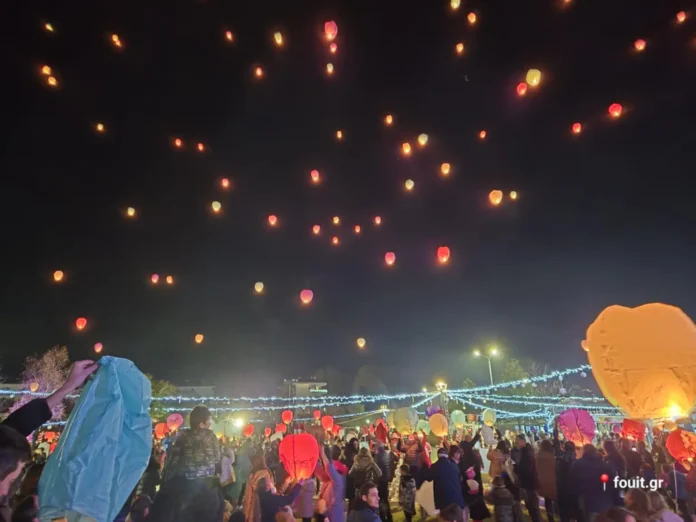 Τα φαναράκια των ευχών πέταξαν στον νυχτερινό ουρανό, πάνω από τη Μαζική Λιμνοπολιτεία, μεταφέροντας τις ευχές των μικρών παιδιών.