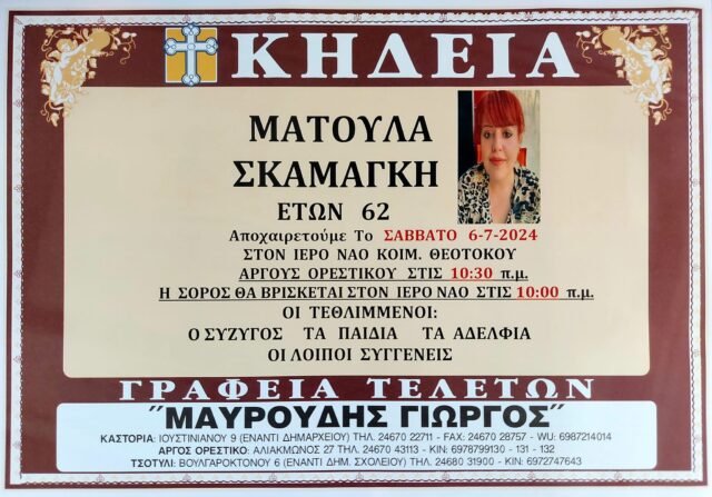 ΚαστοριάΆργος Ορεστικό Θλίψη στο Άργος Ορεστικό: Έφυγε από την ζωή 62χρονη 5 Ιουλίου 2024 FacebookTwitterPinterestWhatsApp Έφυγε από την ζωή η Ματούλα Σκαμάγκη από το Άργος Ορεστικό σε ηλικία 62 ετών. Η κηδεία της θα γίνει αύριο Σάββατο 6 Ιουλίου 2024 στις 10: 30 το πρωί από τον Ιερό Ναό Κοιμήσεως της Θεοτόκου Άργους Ορεστικού Θερμά συλλυπητήρια!!! Κοινοποιήστε: Mοιραστείτε στο Facebook(Ανοίγει σε νέο παράθυρο) Facebook Share on X(Ανοίγει σε νέο παράθυρο) X