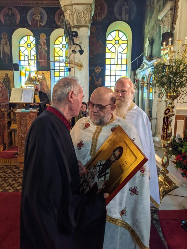 Ο κ. Ρίζος υπηρέτησε επί δεκαετίες την ψαλτική τέχνη, ψάλλοντας δίπλα στον Πρωτοψάλτη κ. Γεώργιο Αποστολίδη και συμβάλλοντας ουσιαστικά στη λατρευτική ζωή της ενορίας. Μετά το πέρας της Θείας Λειτουργίας, οι εφημέριοι της ενορίας, π. Λεωνίδας και π. Παύλος, μαζί με τα μέλη της Εκκλησιαστικής Επιτροπής, προσέφεραν στον τιμώμενο μια εικόνα του Αγίου Βασιλείου ως ένδειξη τιμής, ευγνωμοσύνης και σεβασμού για την προσφορά του. Η Ενορία Αγίας Παρασκευής εκφράζει τις θερμές της ευχαριστίες προς τον κ. Βασίλη Ρίζο και του εύχεται υγεία, μακροημέρευση και κάθε θεία ευλογία.