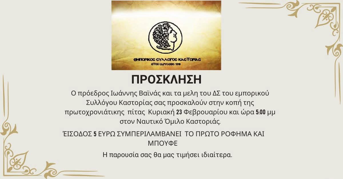 Την βασιλόπιτα θα κόψει ο Εμπορικός Σύλλογος Καστοριάς