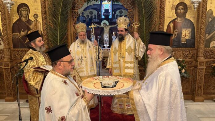 Πριν την απόλυση της Θείας Λειτουργίας, ο Σεβασμιώτατος Μητροπολίτης Καστορίας κ. Καλλίνικος, αφού ευλόγησε τα κόλλυβα του Αγίου, προέβη στην χειροθεσία σε Αναγνώστη του κ. Γεωργίου Φλώρου, εκφράζοντας τη χαρά και την ευχή του για καρποφόρα διακονία στην Εκκλησία του Χριστού.