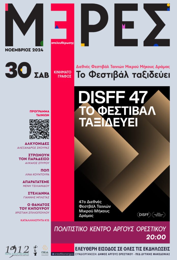 Οι «Μέρες Απελευθέρωσης ΙΙΙ» ολοκληρώνονται με μια μοναδική κινηματογραφική βραδιά που φέρνει το βραβευμένο Διεθνές Φεστιβάλ Ταινιών Μικρού Μήκους Δράμας στο Άργος Ορεστικό. Το κορυφαίο φεστιβάλ του είδους του στην Ελλάδα, με διεθνή αναγνώριση και πολυετή ιστορία, ταξιδεύει σε πόλεις της Ελλάδας και του εξωτερικού, παρουσιάζοντας ταινίες που έχουν ξεχωρίσει και διακριθεί για την πρωτοτυπία, τη δημιουργικότητα και τη δύναμη της αφήγησής τους.