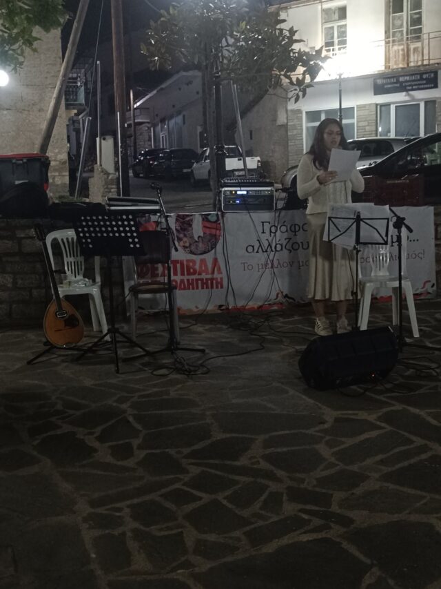 Την ομιλία στην εκδήλωση έκανε ο Χρήστος Ορφανίδης μέλος του Συμβουλίου Περιοχής Δυτικής Μακεδονίας της ΚΝΕ όπου μεταξύ άλλων στάθηκε στο διαχρονικό πέρασμα του Φεστιβάλ της ΚΝΕ – Οδηγητή από την Σιάτιστα. Στην ομιλία του επίσης κάλεσε το λαό της Σιάτιστας να συστρατευτεί στο πλευρό του ΚΚΕ και της ΚΝΕ ώστε να παραδοθεί ο φυσικός πλούτος της περιοχής στους μονοπωλιακούς ομίλους, να αναπτυχθεί μαζικός αγώνας ενάντια στην εγκατάσταση αιολικού πάρκου στον Μπούρινο.