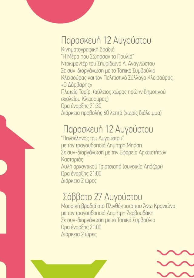 Με τρεις μοναδικές εκδηλώσεις εντός του Αυγούστου συνεχίζεται το Πολιτιστικό Καλοκαίρι του Δήμου Καστοριάς!