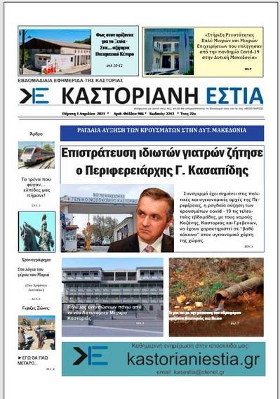 Το πρωτοσέλιδο της Καστοριανής Εστίας (1-4-2021)
