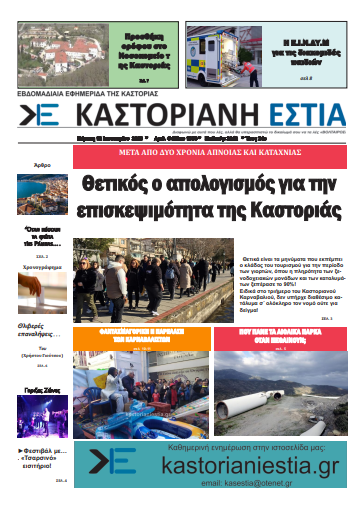 Το πρωτοσέλιδο της Καστοριανής Εστίας 12-1-2023