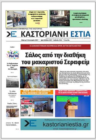 Το πρωτοσέλιδο της Καστοριανής Εστίας 13-1-2022