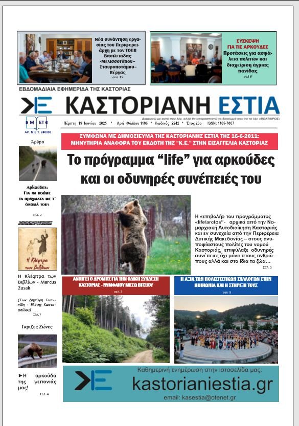 Το πρωτοσέλιδο της Καστοριανής Εστίας 19-6-2025
