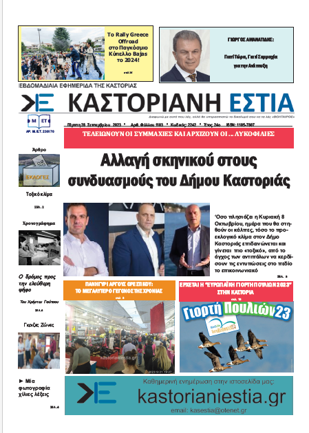 To πρωτοσέλιδο της Καστοριανής Εστίας 28-9-2023