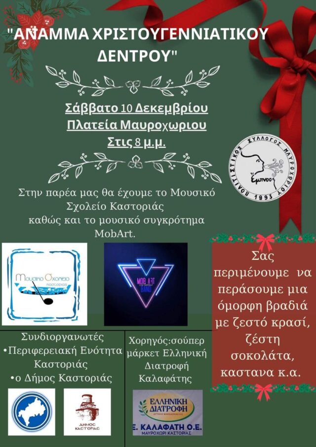 To Σάββατο η φωταγώγηση του δένδρου στο Μαυροχώρι και η συναυλία