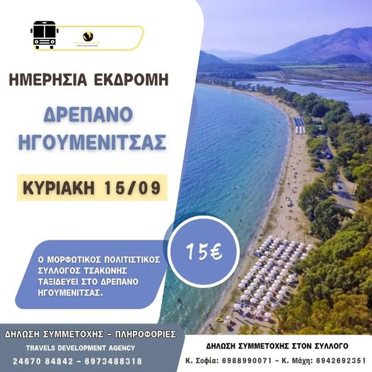 Ο Μορφωτικός Πολιτιστικός Σύλλογος Τσάκωνης αποχαιρετά το καλοκαίρι με μια εκδρομή! Εξόρμηση στο Δρέπανο Ηγουμενίτσας με το Travels Development!