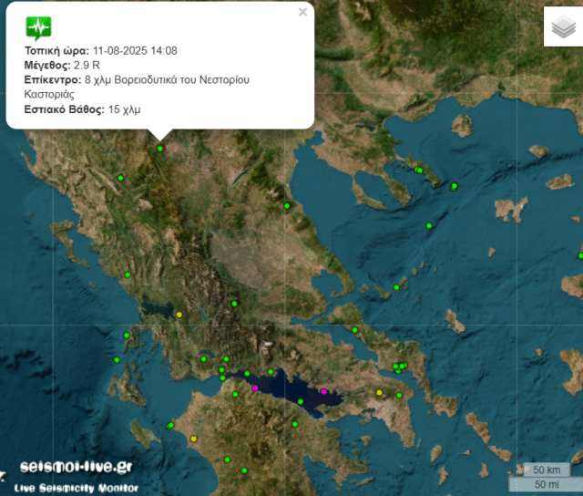 Τρεις σεισμικές δονήσεις καταγράφηκαν το απόγευμα της Δευτέρας στην Καστοριά.