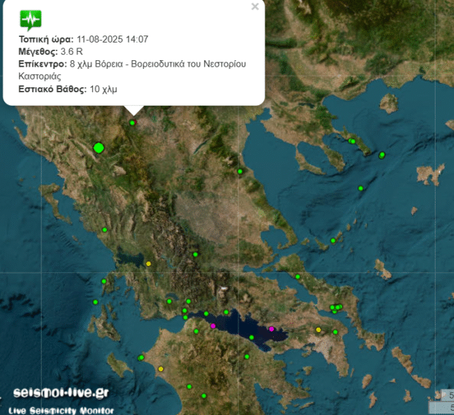 Τρεις σεισμικές δονήσεις καταγράφηκαν το απόγευμα της Δευτέρας στην Καστοριά.