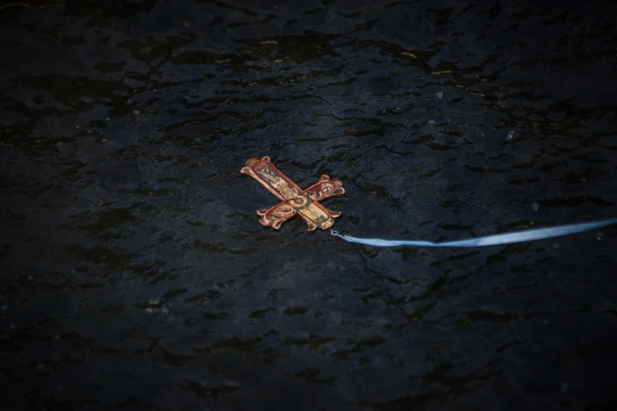 Αργότερα, ο ιερέας επανέλαβε την κίνηση και έριξε σωστά τον Σταυρό στο νερό.