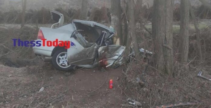 Το μοιραίο Ι.Χ. εξετράπη της πορείας του και προσέκρουσε με σφοδρότητα σε συστοιχία δέντρων