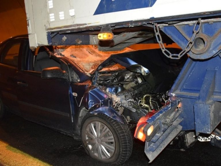 Γι’ αυτό το λόγο σταμάτησε και τότε διαπίστωσε ότι κάτω από την καρότσα του φορτηγού του ήταν σφηνωμένο ένα Ι.Χ. αυτοκίνητο.