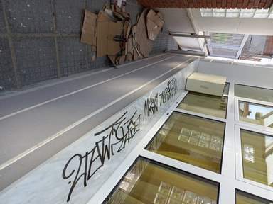Κλειστό Γυμναστήριο Άργους Ορεστικού σήμερα το πρωί: Έκαψαν τα καινούρια πάνελ που επρόκειτο να τοποθετηθούν στην οροφή, έκαναν γκράφιτι στις καινούριες πόρτες, τα παράθυρα και τα μάρμαρα που μπήκαν μόλις πριν δύο ημέρες.