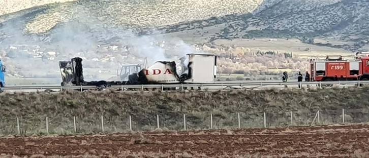 Η πυρκαγιά ξέσπασε γύρω στις 04:20πμ στο επικαθήμενο τμήμα- ψυγείο του μεγάλου οχήματος. Μέχρι και αυτή την ώρα επιχειρούν οκτώ πυροσβέστες με τέσσερα οχήματα για την πλήρη κατάσβεση της φωτιάς.