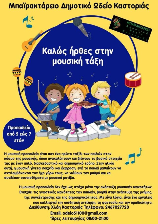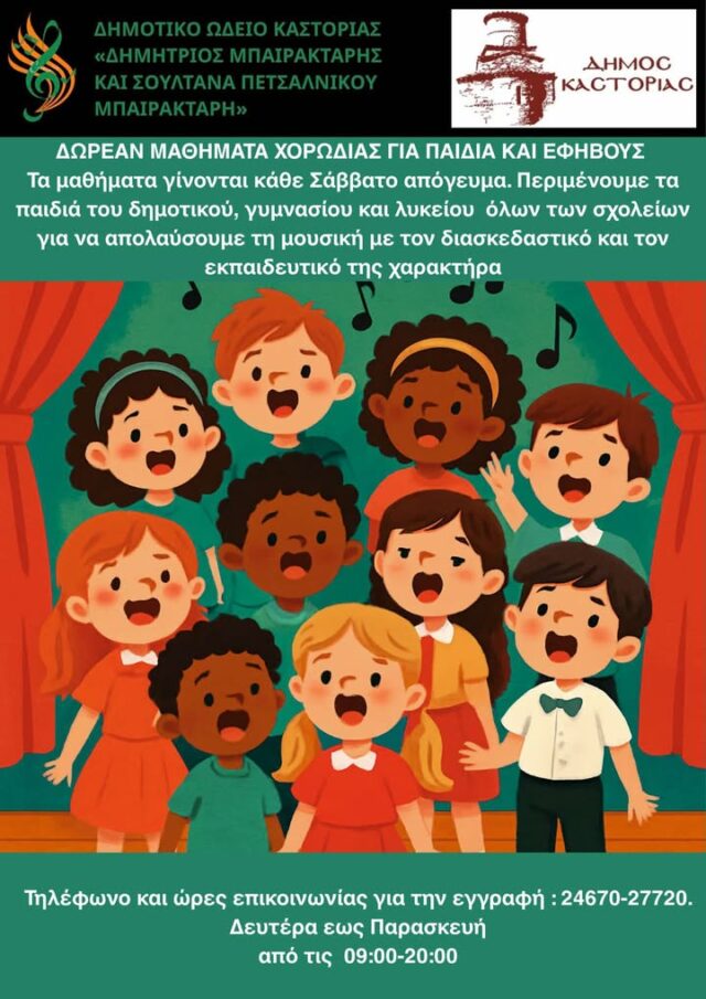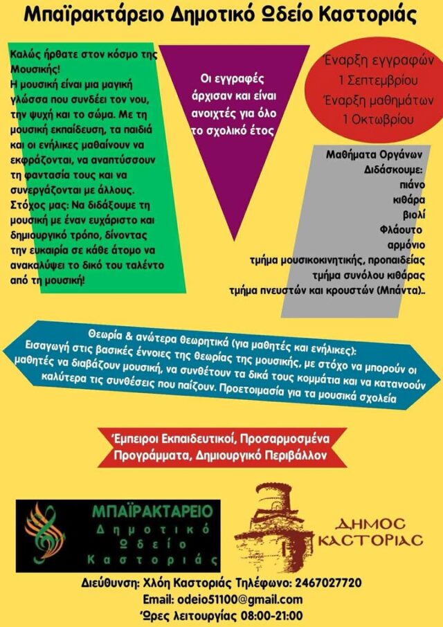 Ο Πρόεδρος του Δημοτικού Ωδείου Καστοριάς «Δημήτριος Μπαϊρακτάρης & Σουλτάνα Πετσάλνικου Μπαϊρακτάρη» Νίκος Αλεξανδρίδης ανακοινώνει την έναρξη των εγγραφών στο Δημοτικό Ωδείο Καστοριάς για το διδακτικό έτος 2025-2026.
