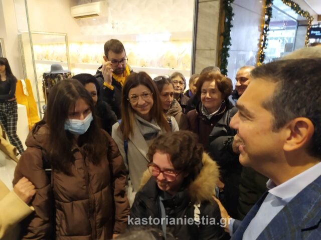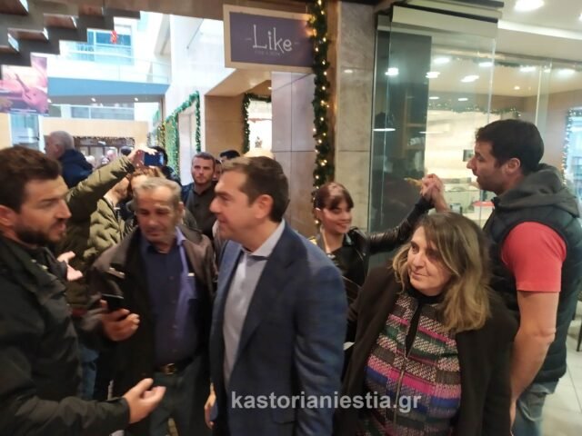 Αμέσως μετά την άφιξή του στην Καστοριά ο πρόεδρος της Συριζα, ξεναγήθηκε από την Βουλευτή Ολυμπία Τελιγιορίδου στα καταστήματα του Εμπορικού Κέντρου της πόλης και στην συνέχεια έκανε βόλτα στην Λίμνη