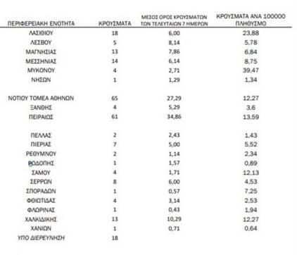 Η γεωγραφική κατανομή των κρουσμάτων έχει ως εξής: