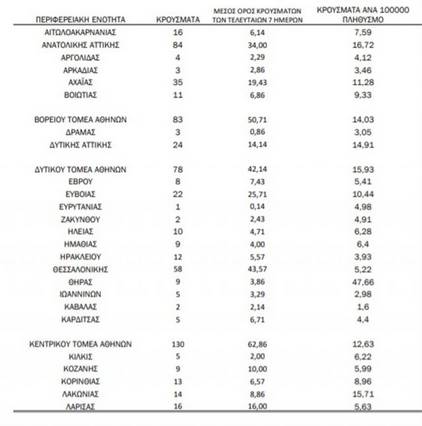 Η γεωγραφική κατανομή των κρουσμάτων έχει ως εξής: