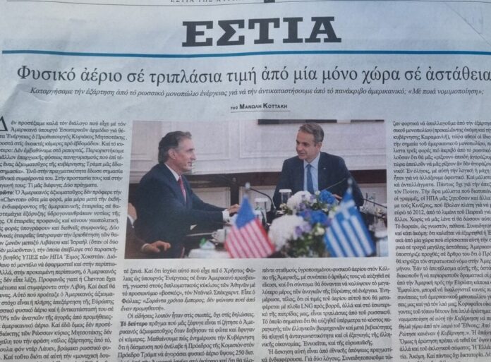 Κλείνοντας, βλέπετε πιο κάτω πως ο κ. Κοττάκης Διευθυντής ίσως της πιο έγκυρης και πατριωτικής ελληνικής εφημερίδας ΕΣΤΙΑ αποκαλύπτει πως το αμερικανικό LNG θα είναι ΤΡΕΙΣ ναι 3! φορές ΑΚΡΙΒΟΤΕΡΟ από το ρωσικό, δηλαδή και το αζέρικο του TAP. Θα βρεθεί επιτέλους κάποιος από τους < τοπικούς μας άρχοντες!> όλων των βαθμίδων να μιλήσει και να δώσει πειστικές απαντήσεις στους συμπολίτες που θα περάσουν άλλον ένα δύσκολο χειμώνα με πανάκριβη θέρμανση;
